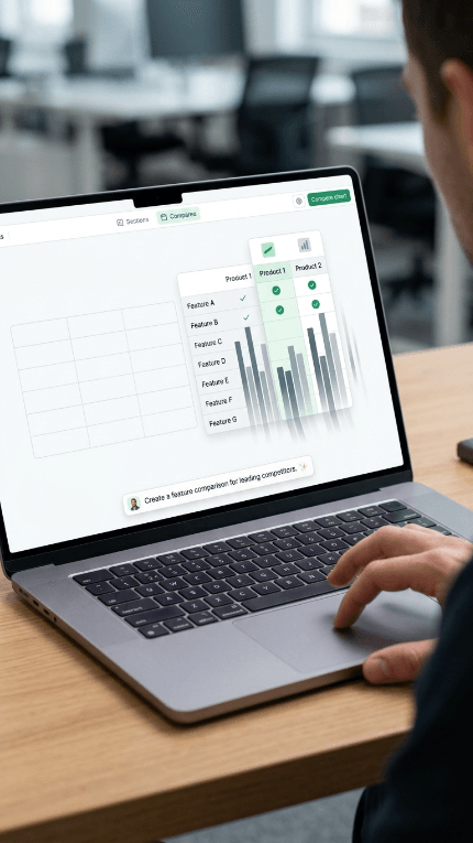Generative UI. Ask for pricing or a comparison. Tables and charts render in the session while the agent narrates.